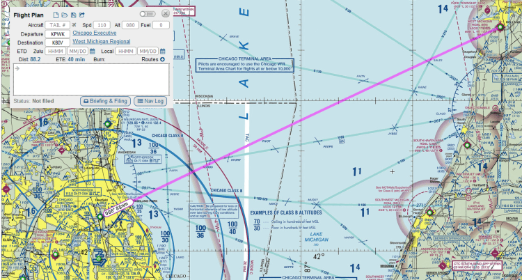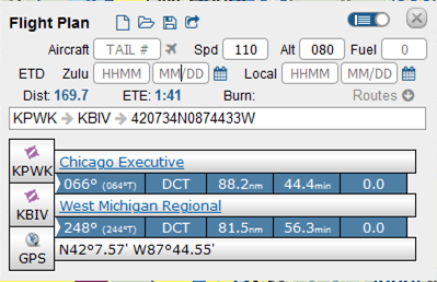 Let’s start with a trip from Chicago Executive to Holland Michigan, KPWK to KBIV.