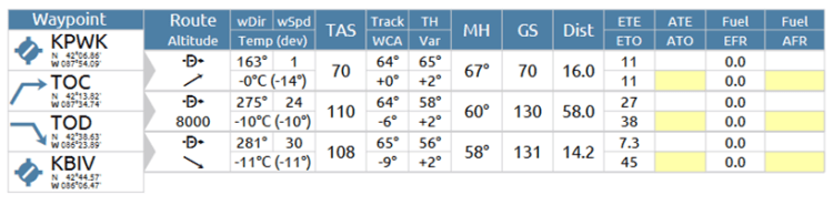 And finally we have a flight plan with climb performance, TOC and TOD points, and fuel usage.